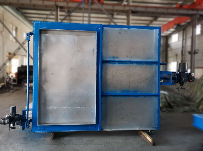 該風門吸取國外有關技術研制而成,框架采用型鋼焊接結構,門板為不銹鋼、方鋼復合不變形制作,對于灰塵較多的管道設有刮板除灰裝置及除塵箱。具有啟閉靈活,無卡阻、密封嚴密等特點。